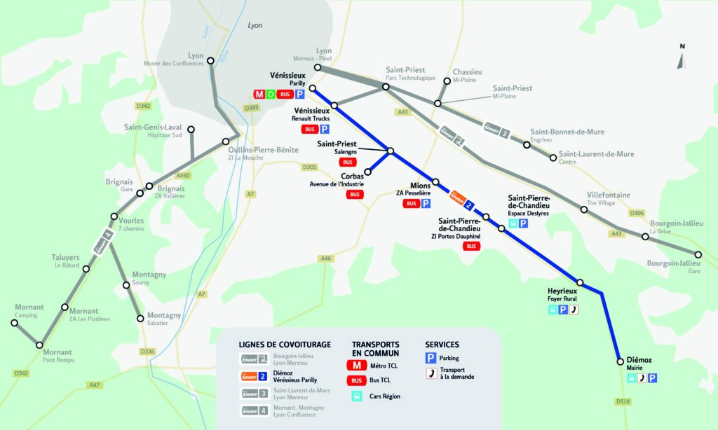 Cette ligne s’inscrit dans un réseau plus large de lignes de covoiturage, développé par SYTRAL Mobilités à l’initiative de la Métropole de Lyon, pour favoriser la mobilité partagée sur l’ensemble du territoire métropolitain et périurbain.