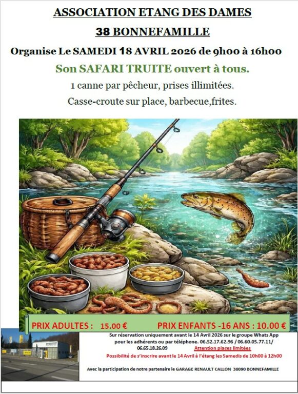 L’Association Étang des Dames vous convie à son traditionnel Safari Truite, ouvert à tous !